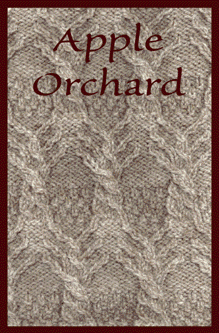 A drop shoulder textured pullover with rows of gnarly apple trees and moss stitch pattern.