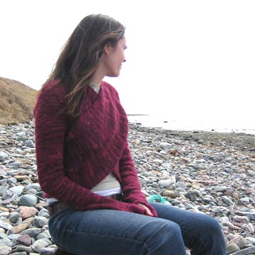 A crossover sweater knit sideways and folded to shape.